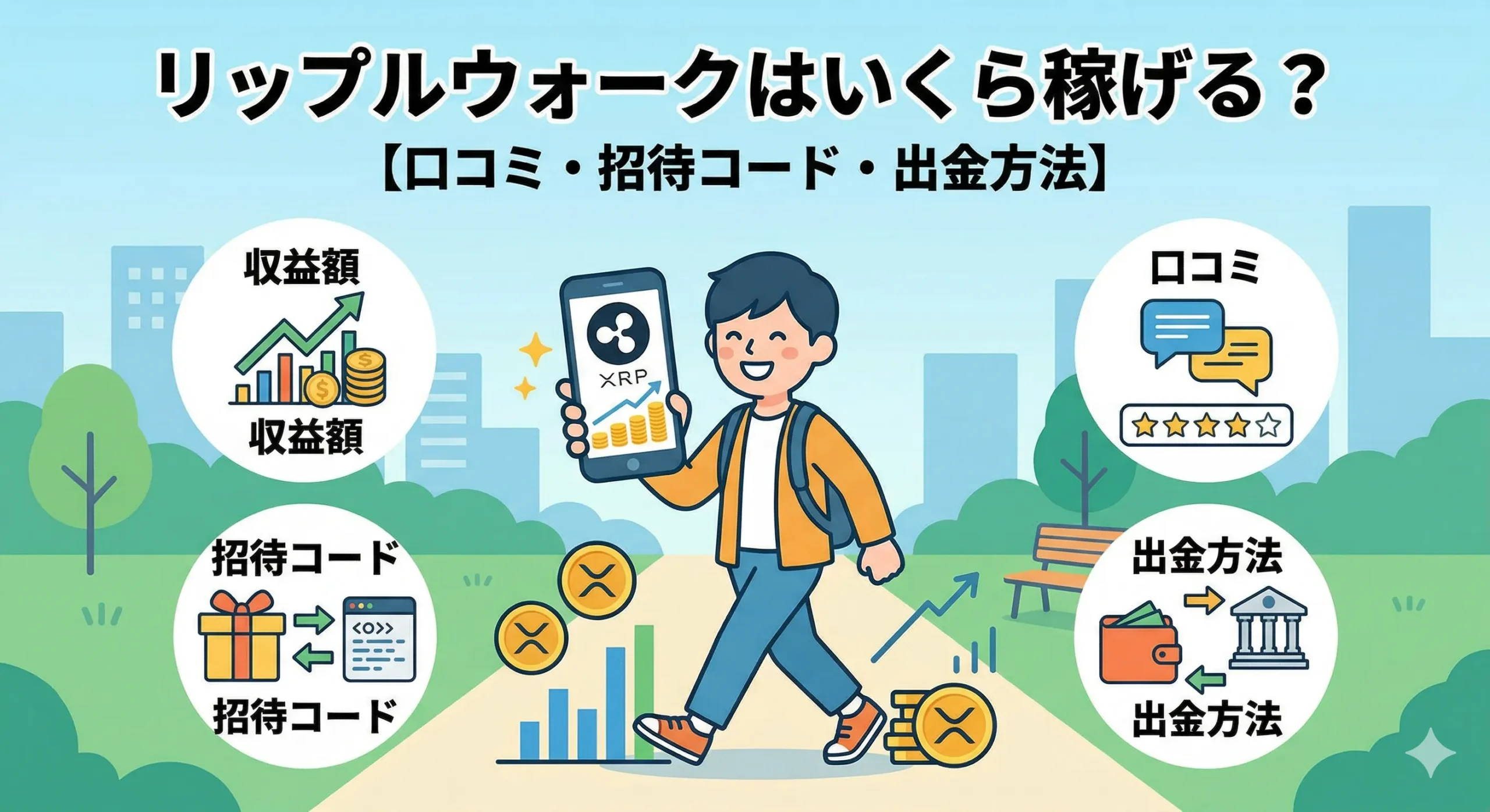 今回は、歩くだけで仮想通貨リップル(XRP)が貯まるポイ活アプリ「リップルウォーク(XRPWalk)」について、リアルな収益や口コミ、出金方法まで詳しく解説しました。